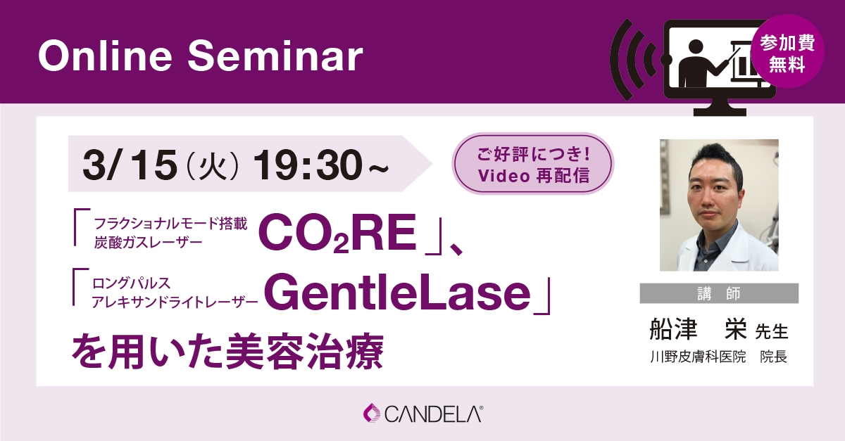 【ご好評につきビデオ再配信】 船津先生によるCO2REとGentleLASEを用いた美容治療についてのセミナーを、大好評につき再配信いたします。エキスパートによる貴重な治療の実際を学ぶチャンスですので、ぜひご参加ください。