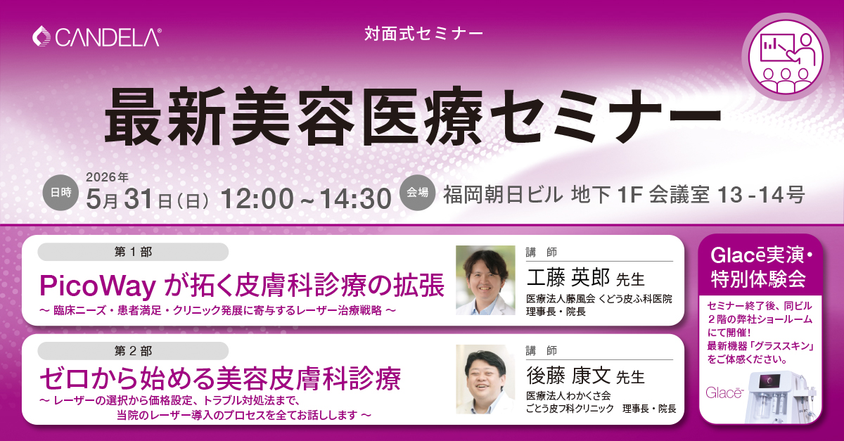 ※セミナー終了後、同ビル2階の弊社ショールームにて新製品「Glacē」の実演・特別体験会を開催いたします。最新機器による「グラススキン」をぜひこの機会にご体感ください。(要事前申し込み)