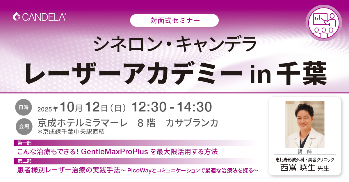 本セミナーは、西嶌 暁生 先生(恵比寿形成外科・美容クリニック)を講師にお迎えし、GentleMax Pro Plus と PicoWay に関して二部構成でお話いただきます。
